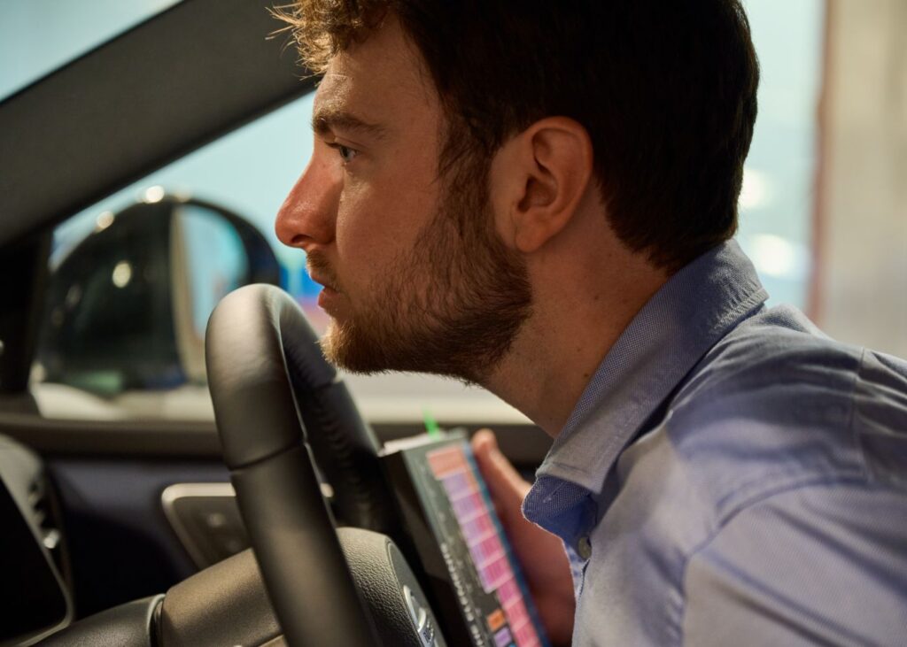 The evaluation process blends objective and subjective assessment. Liaising with the Nissan engineering and manufacturing teams, Eastland and his team test all the materials, such as the soft material used for the new 3D diamond quilted seats on the Qashqai, in a variety of conditions that replicate real-world environments. While doing this, it must be taken into account that the chemical properties – such as odor – can change with temperature, for example. Where a potential new material or chemical is found to negatively affect the overall cabin ambience, Eastland and his colleagues will identify alternatives to ensure the sanctity of the new-car smell.