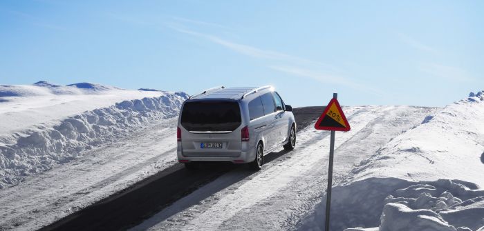 Reliable handling in ice and snow is also essential. On the test drives, the EQV showed that the low, central positioning of the lithium-ion battery in the underbody has a positive effect on the vehicle’s handling, specifically under winter conditions.