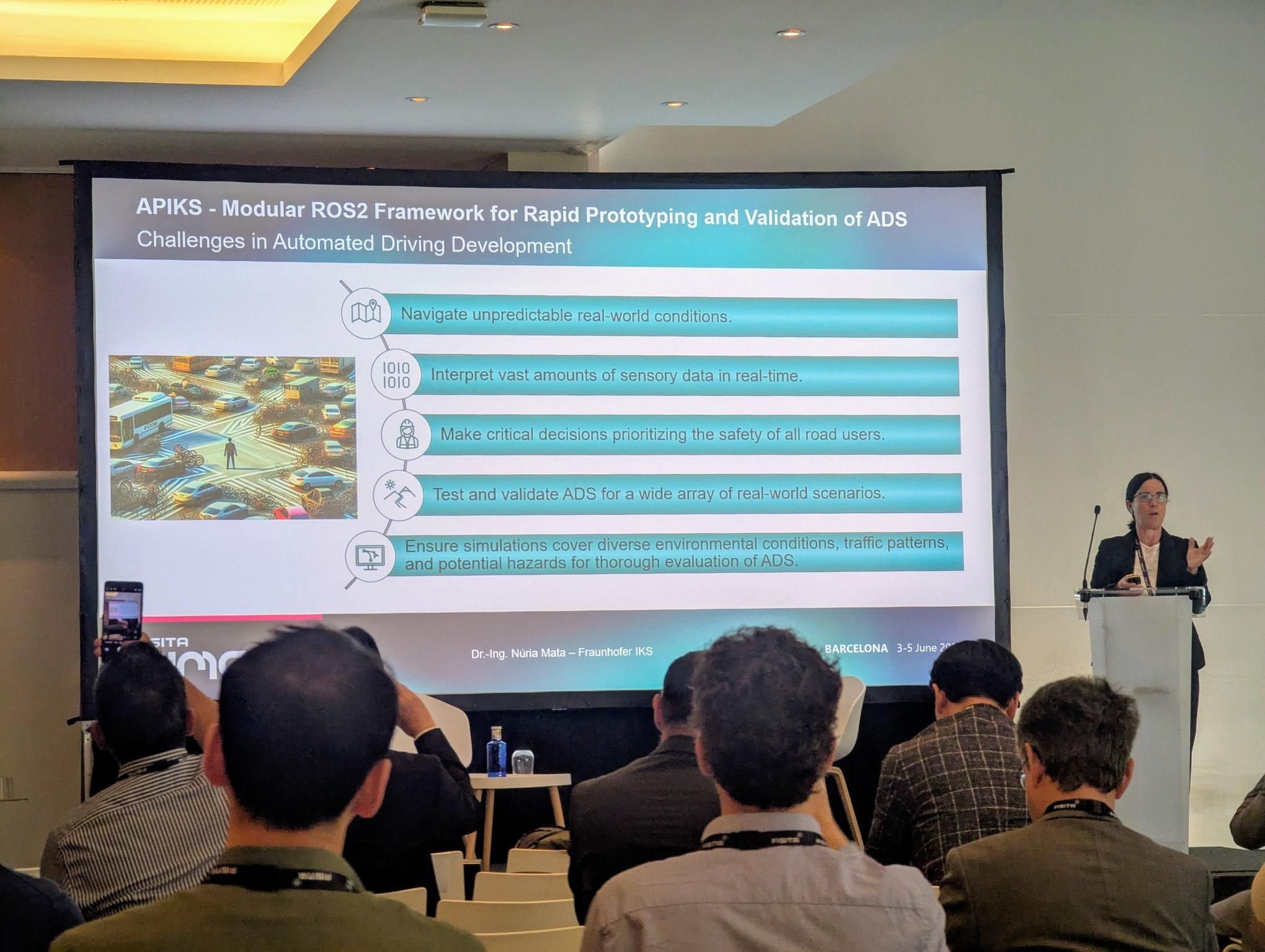 In the Artificial intelligence and automation in product development session, Dr Núria Mata, head of department at Fraunhofer IKS, presented APIKS – a modular framework for rapid prototyping and validation of automated driving systems. Integrated with the CARLA (Car Learning to Act) simulator, APIKS offers a simplified framework for small-scale vehicle integration of AD functions. Bridging academia and industry and focusing on pre-development, Fraunhofer can create corner cases and provide proof-of-concept results using heuristics and machine learning.