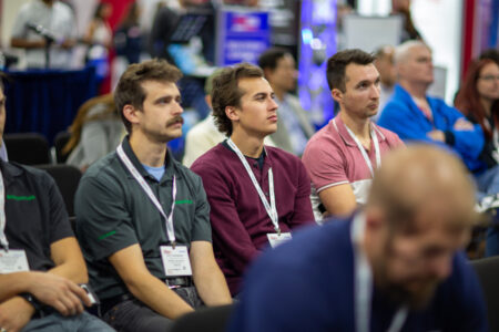 At the Industrial Inspection & Analysis booth, representatives are discussing the supplier’s expertise in electromagnetic…
