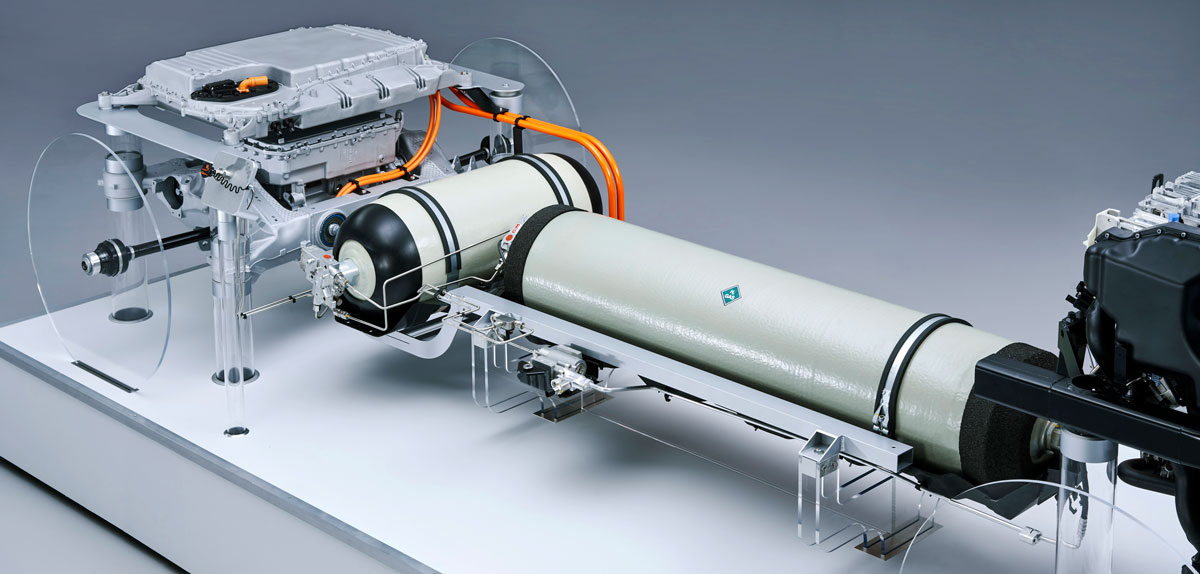 The electric converter located in the fuel cell adapts the voltage level to that of both the electric powertrain and the peak power battery, which is fed by brake energy as well as the energy from the fuel cell. The vehicle also accommodates a pair of 700 bar tanks that can together hold 6kg of hydrogen.