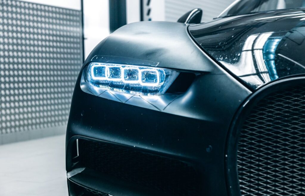 A matte surface, adhesive strips, scratches and minor grazes bear witness to the tough life Bugatti Chiron chassis 4-005 has led. For more than eight years, the vehicle served as an electronic and electrics development hack for the company, running across multiple continents and in all climatic conditions.