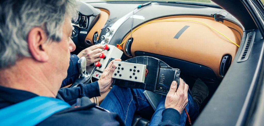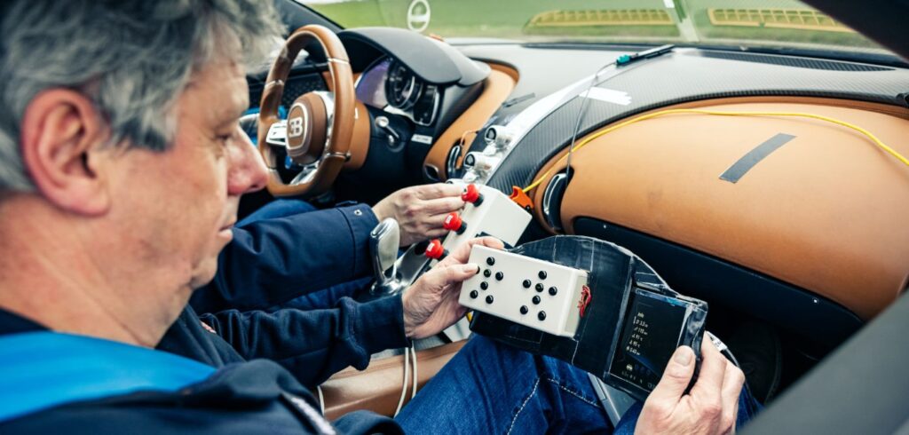 Test engineers tend to develop a prototype for a specific task then test their systems until shortly after the start of production, after which the vehicle is disposed of. But not so with the ‘Four Five’, as the car is referred to by Bugatti’s engineers (the four stands for ‘prototype’ and the five stands for the fifth prototype of the Chiron). One of eight prototypes created, 4-005 served predominantly as a software test and development platform for the Chiron’s 30 or so control units.